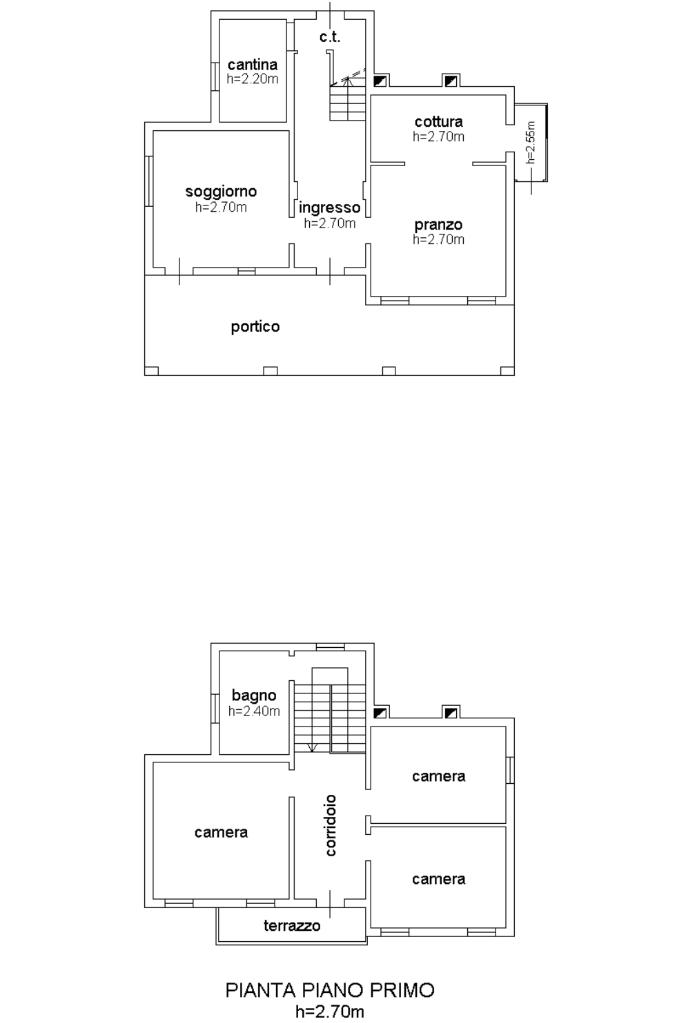 Al piano ammezzato si trova il secondo bagno con box doccia in fase di rifaciemento. Salendo qualche gradino, si accede a due camere matrimoniali e una singola. Un terrazzo completa il piano.